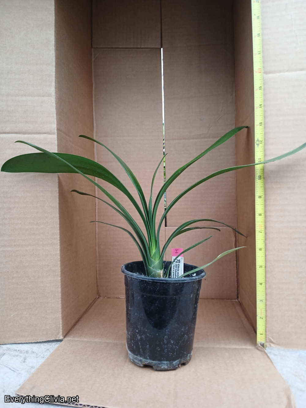 7+ leaf, as yet unbloomed. From Utopia Clivia seed (South Africa).First plant photo is the plant up for auction. Photo was taken in front of box 12" wide.
